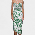 Inspirado en la calma de la naturaleza, el conjunto Ahria combina un bañador de una sola pieza con un vestido de tirantes estampado, ideal para quienes buscan comodidad sin renunciar al estilo. Su diseño fluido y el estampado de sombras de árboles crean un efecto visual suave y envolvente.
