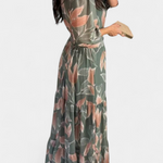 Aísha Vestido Largo Floral con Corte Fluido y Motivo de Hojas