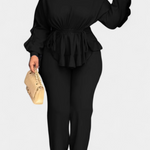 Femenino, versátil y lleno de carácter, el conjunto Charmed combina un top de manga larga con volantes y cordón ajustable con un pantalón de corte ceñido. Su silueta equilibra comodidad y estilo, creando un look contemporáneo que realza la figura sin esfuerzo. Perfecto para quienes buscan una pieza dos en uno con encanto moderno.