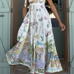 Cirila Vestido Largo con Cordones y Estampado Floral Fantasía