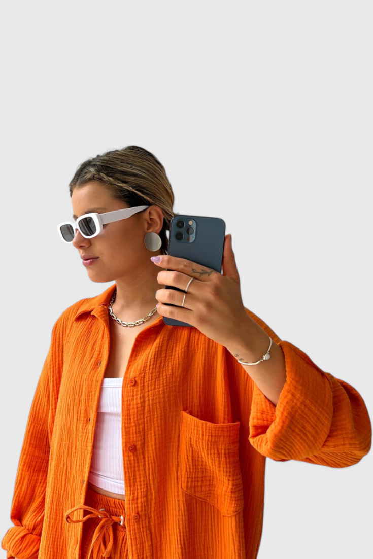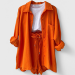 Comodidad chic para mañanas lentas y tardes relajadas. El Conjunto Xenia está confeccionado con un tejido premium para una sensación suave y transpirable que se mueve con facilidad. Con un top relajado y un collar elegante, además de pantalones cortos juguetones, combina comodidad y sofisticación de una manera que se siente effortless—ya sea que te quedes en casa o salgas.