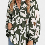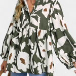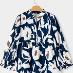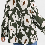Filomena Blusa con Media Botonadura y Manga Abullonada en Estampado Floral Abstracto