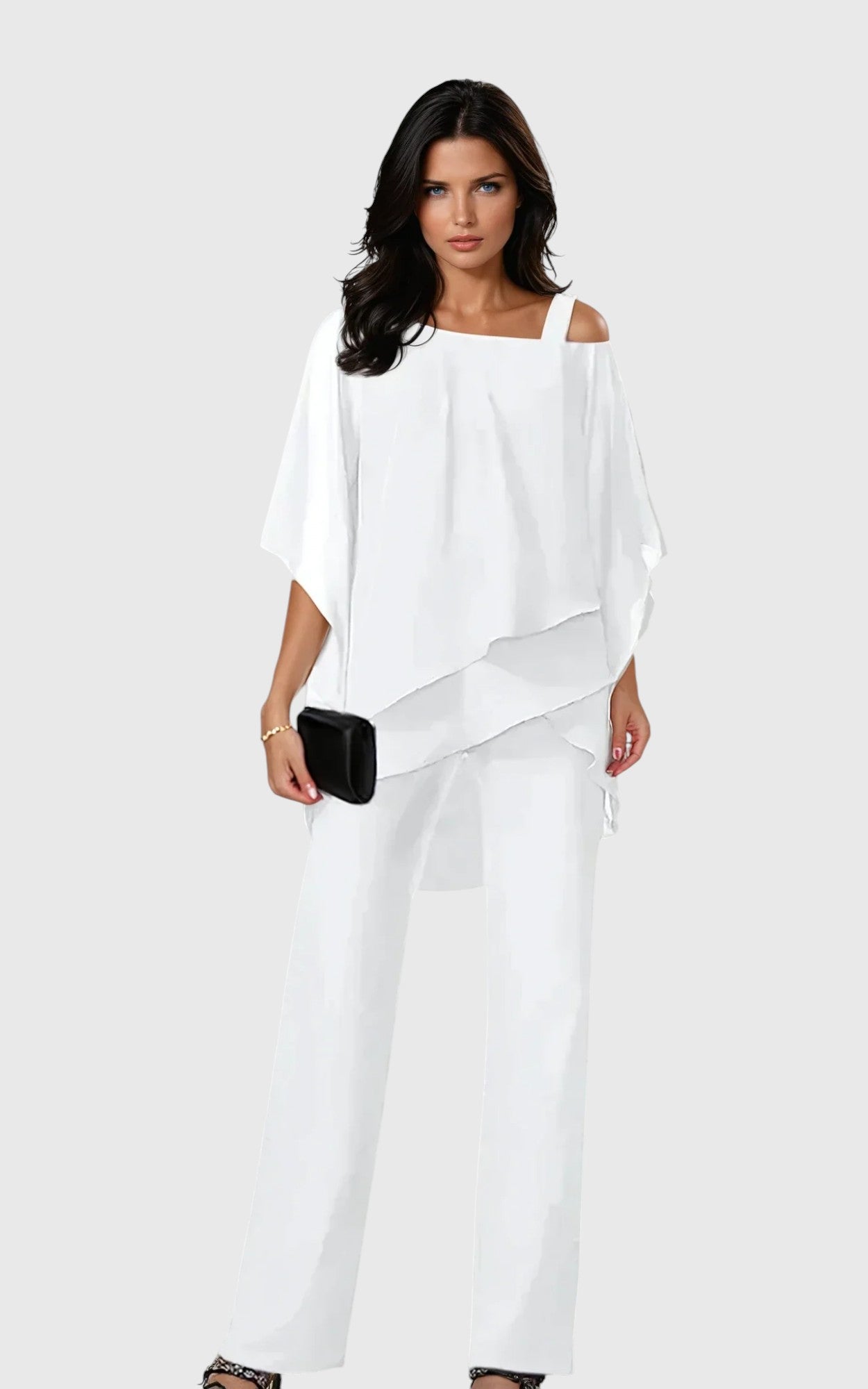 Parte Superior: Diseño asimétrico en capas con detalle de hombro descubierto