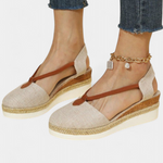 Eunate Sandalias Cerradas con Cuña de Efecto Yute y Detalle Natural