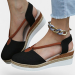 • Cuña forrada con efecto yute para una altura cómoda y natural